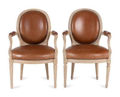 A Pair of Louis XVI Style White-Painted Fauteuils
