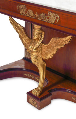 A Pair of Empire Style Gilt-Bronze Mounted Mahogany Marble-Top Console Tables