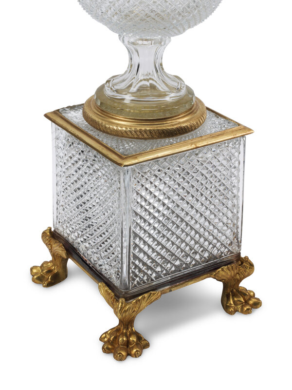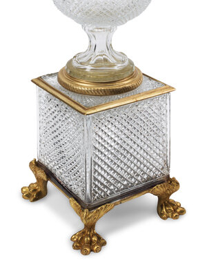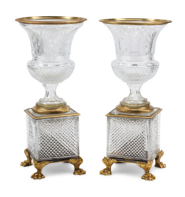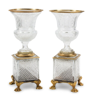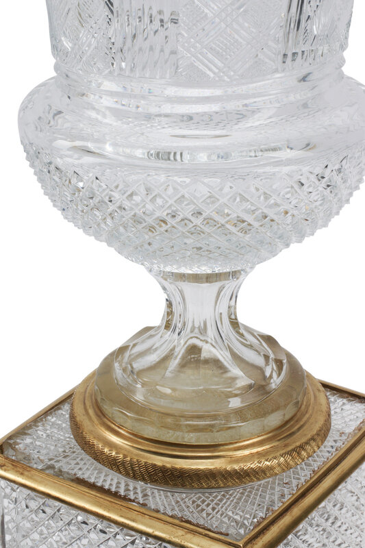 A Pair of French Gilt-Bronze Mounted Cut Glass Urns