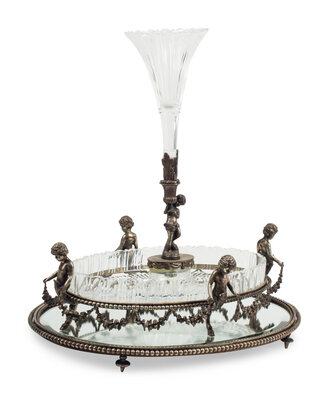 A Baccarat Silvered Bronze and Cut Glass Table Centerpiece