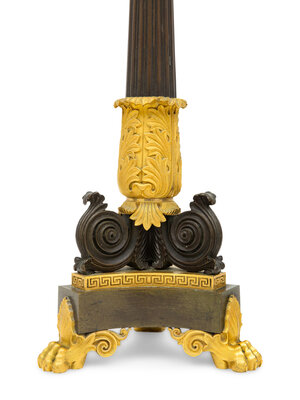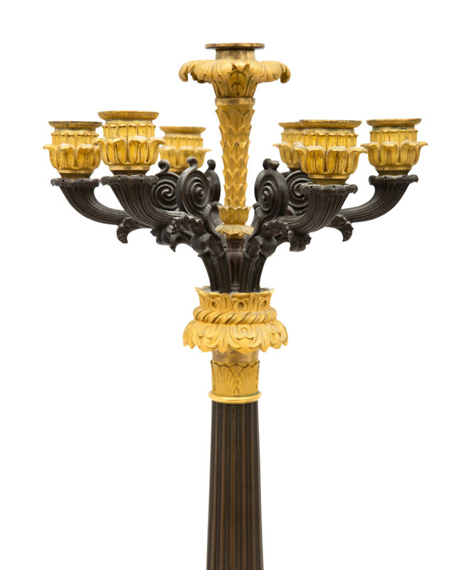 A Pair of Charles X Gilt and Patinated Bronze Seven-Light Candelabra