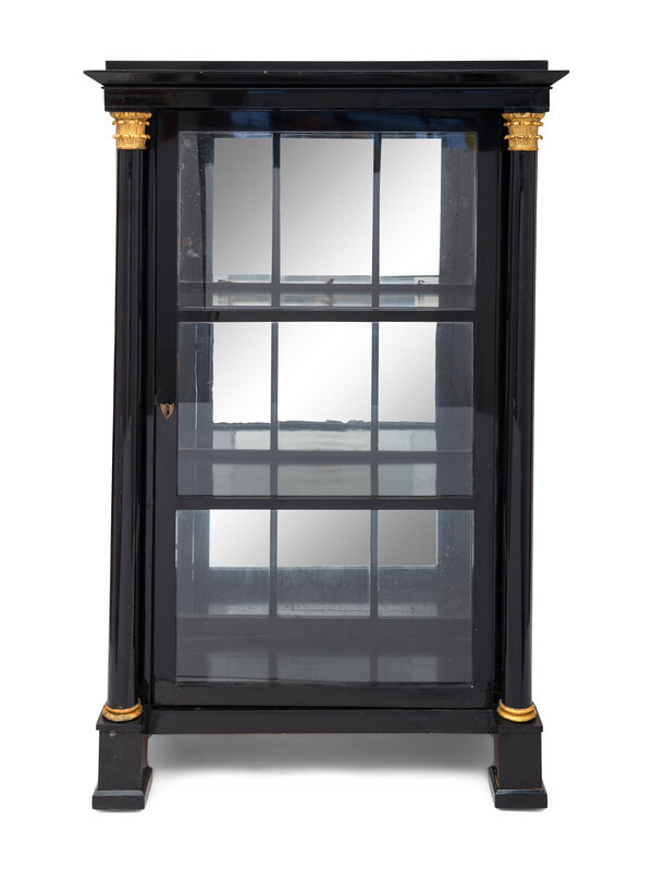 An Austrian Neoclassical Black Painted and Parcel-Gilt Vitrine Cabinet