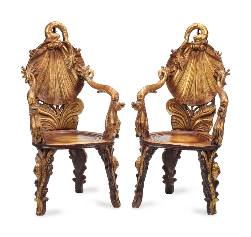 A Pair of Venetian Parcel-Gilt "Grotto" Style Armchairs