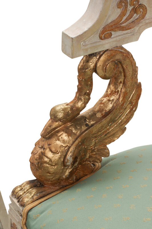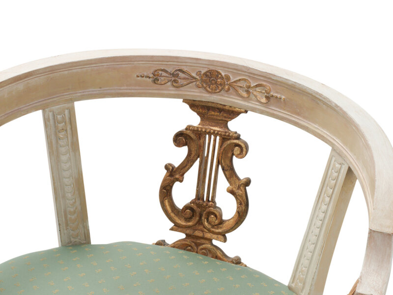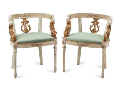 A Pair of Italian Neoclassical Style Painted and Parcel-Gilt Armchairs