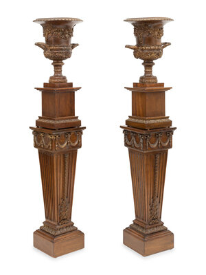the urns attached to socles and set on the pedestals
