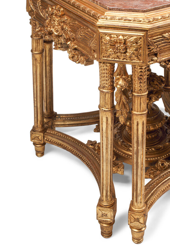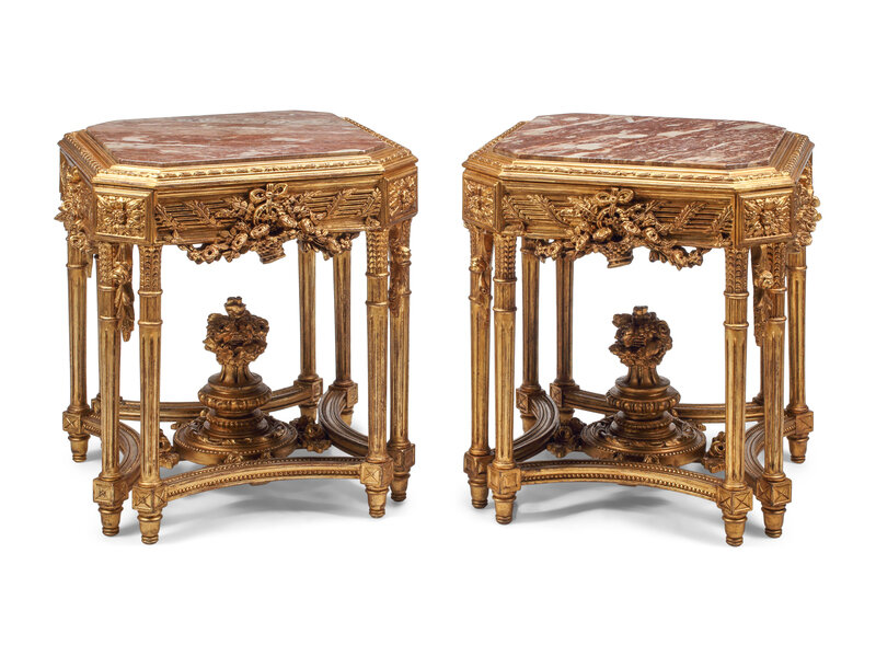 A Pair of Italian Carved Giltwood Marble-Top Tables