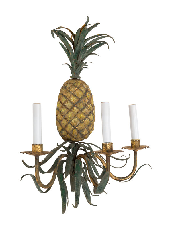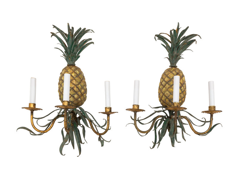 A Pair of Italian Tole Painted Pineapple-Form Three-Light Sconces