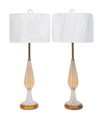 A Pair of Marbro Lamps with Seguso Murano Glass