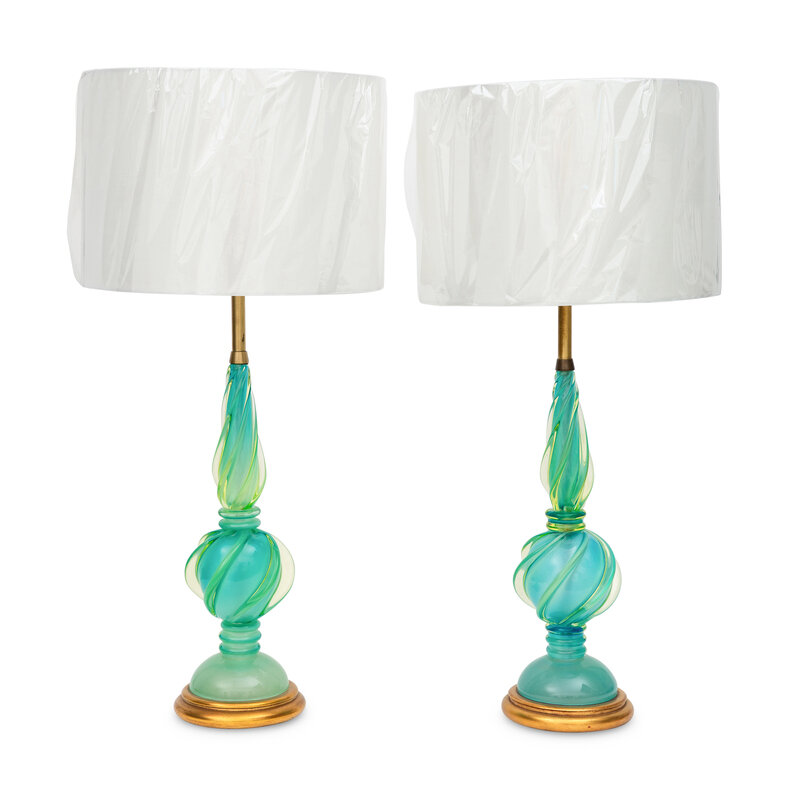 A Pair of Seguso for Marbro Murano Glass Lamps