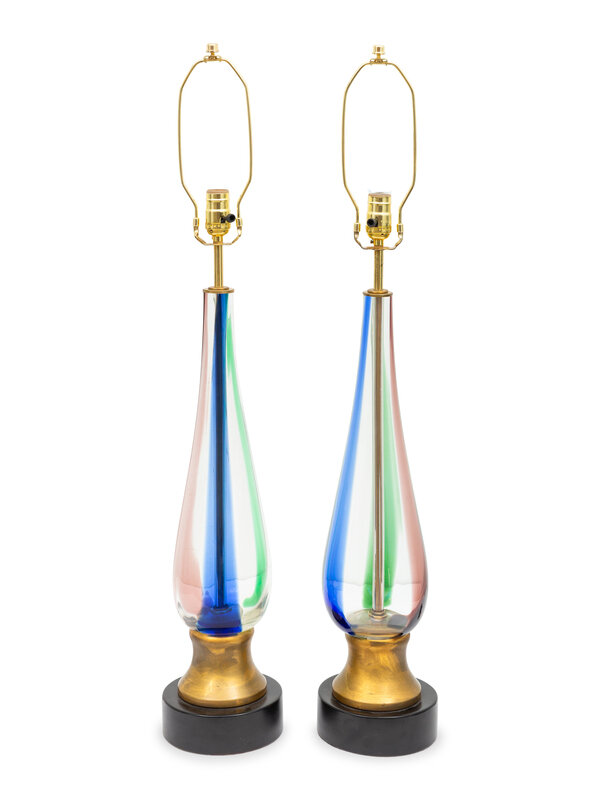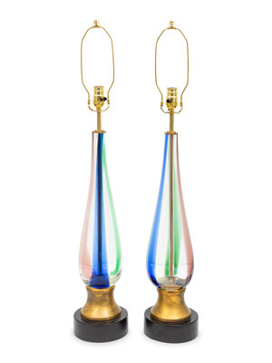 A Pair of Marbro and Seguso Murano Glass Lamps