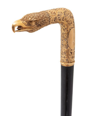 An English Eagle-Form Gilt-Metal and Wood Walking Stick