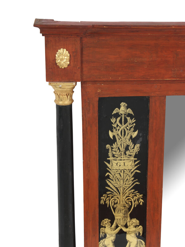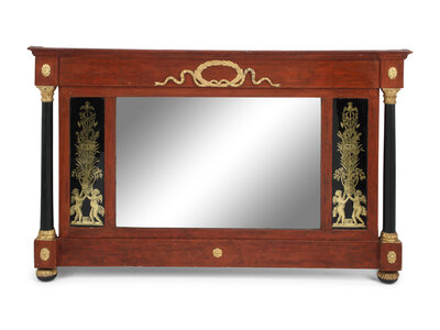 A Neoclassical Style Painted and Églomisé Panel-Inset Overmantle Mirror