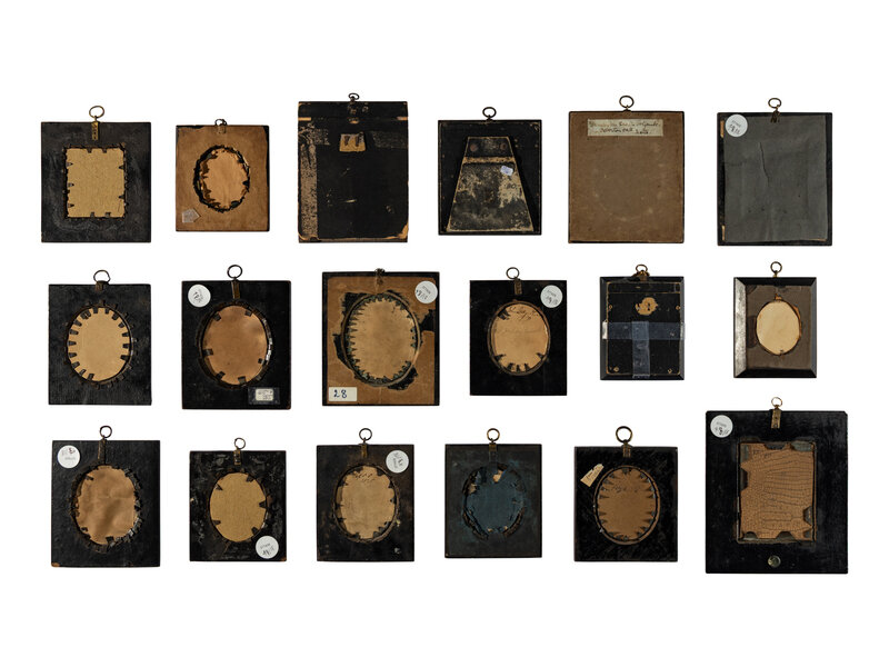 A Collection of Eighteen Silhouettes and Portrait Miniatures in Black Frames