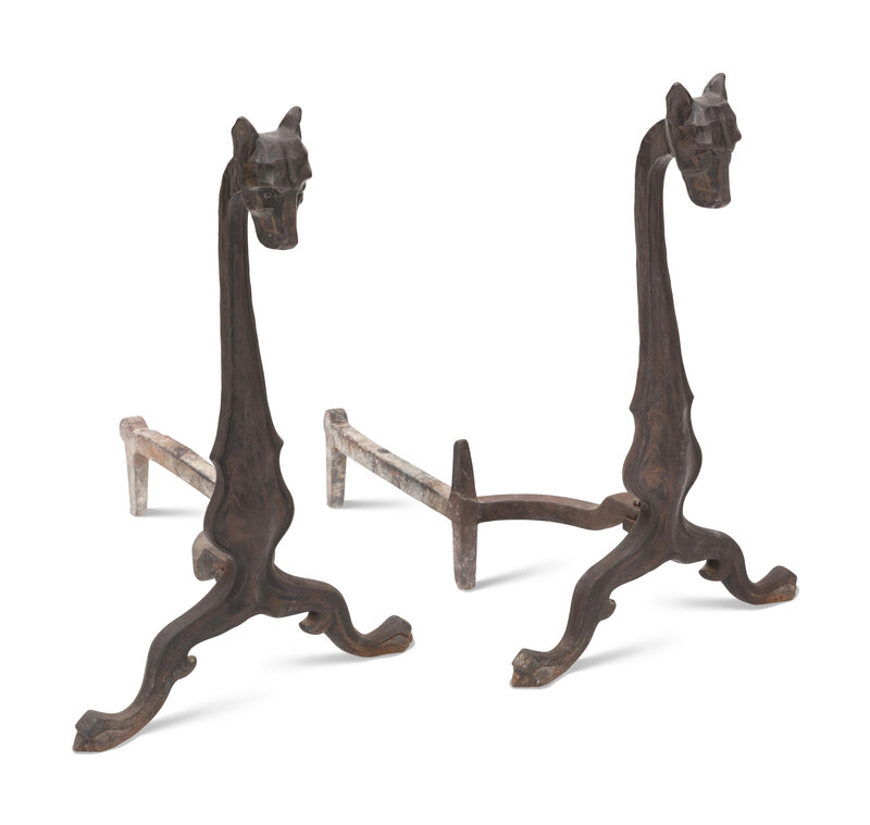 A Pair of Bradley and Hubbard Cast Iron Hound Andirons