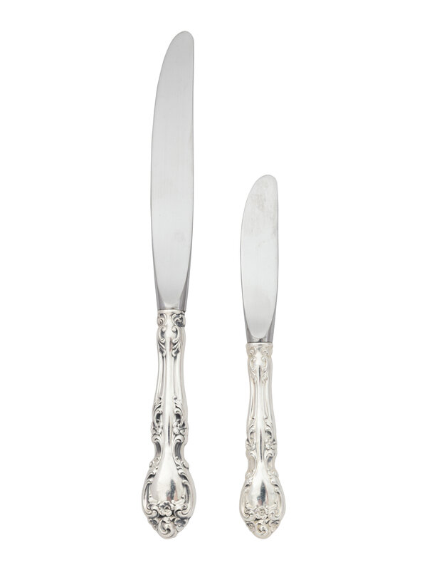 Length of dinner knives 8 3/4 inches; length of dinner forks 7 3/4 inches