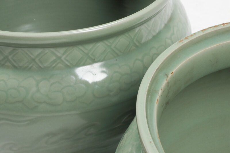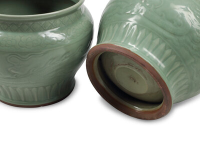 A Pair of Chinese Celadon Porcelain Jardinieres