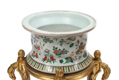 A Pair of Chinese Porcelain Jardinières on Giltwood Bases