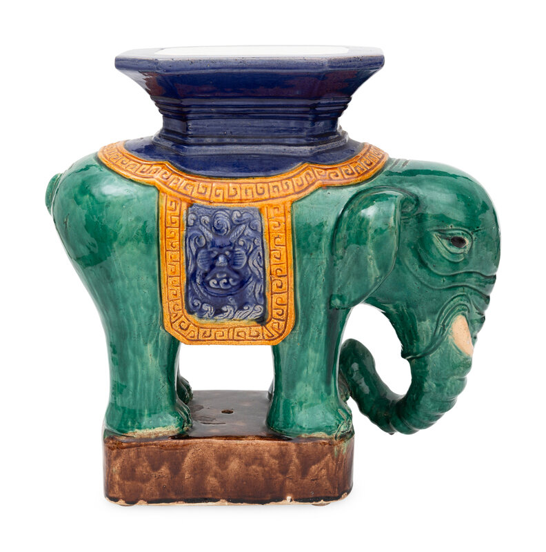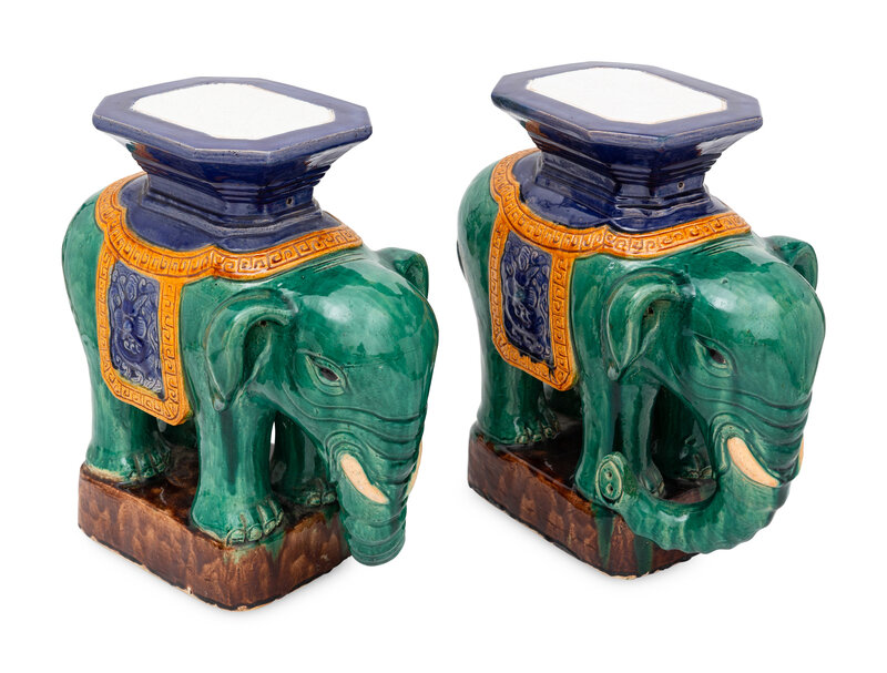 A Pair of Glazed Ceramic Elephant-Form Side Tables