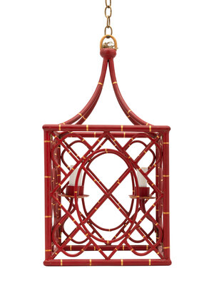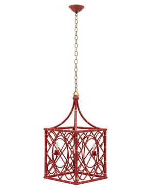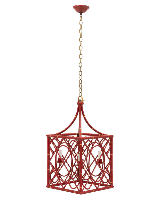 A Red-Painted and Parcel-Gilt Faux Bamboo Four-Light Lantern