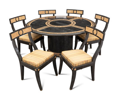 Height of table 29 x diameter 60 inches; height of chairs 34 inches.