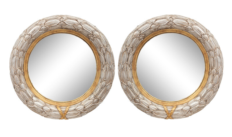 A Pair of Silvered and Parcel Gilt Convex Mirrors