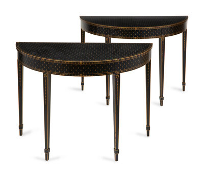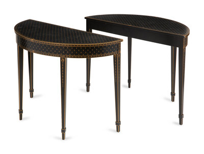 A Pair of Black and Gold-Painted Console Tables
