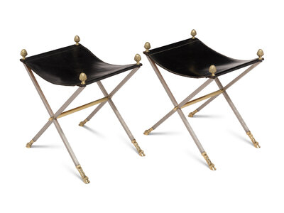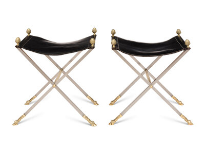 A Pair of Steel and Leather Campaign Stools