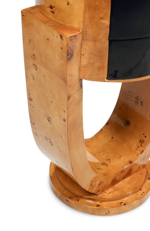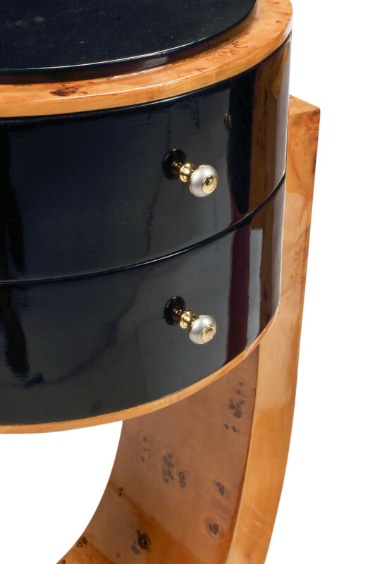 A Pair of Art Deco Style Part-Ebonized Burl Walnut Bedside Cabinets
