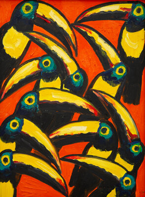 signed and inscribed Hunt Slonem / 2021 / Toucanettes / TD0731 (verso)