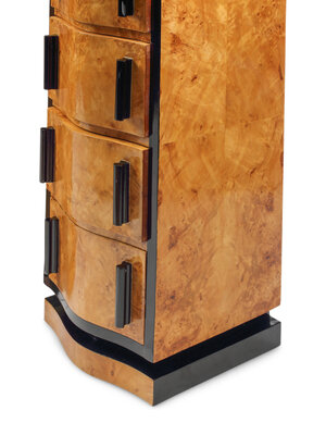 A Pair of Art Deco Style Part-Ebonized Burl Walnut Tall Chests of Drawers