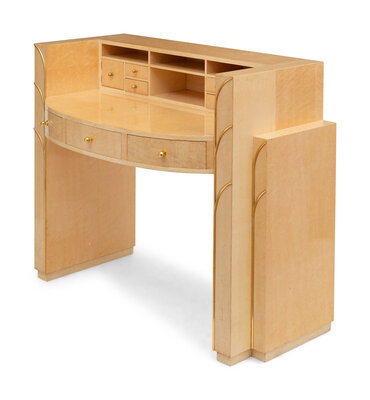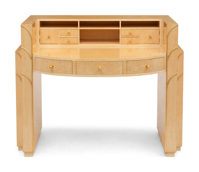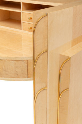 An Art Deco Style Brass Mounted Birdseye Maple Dressing Table