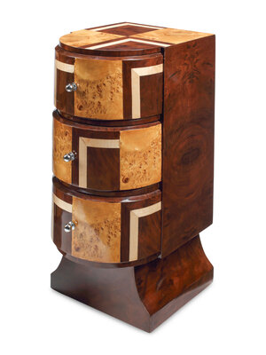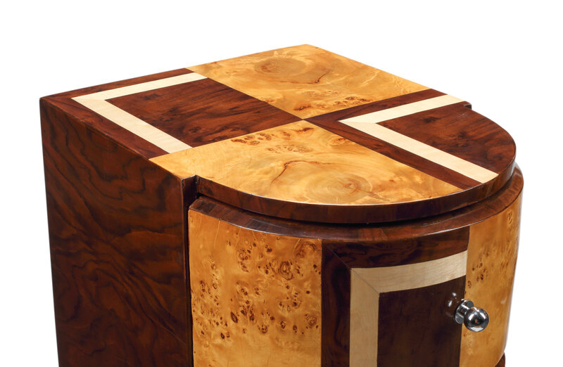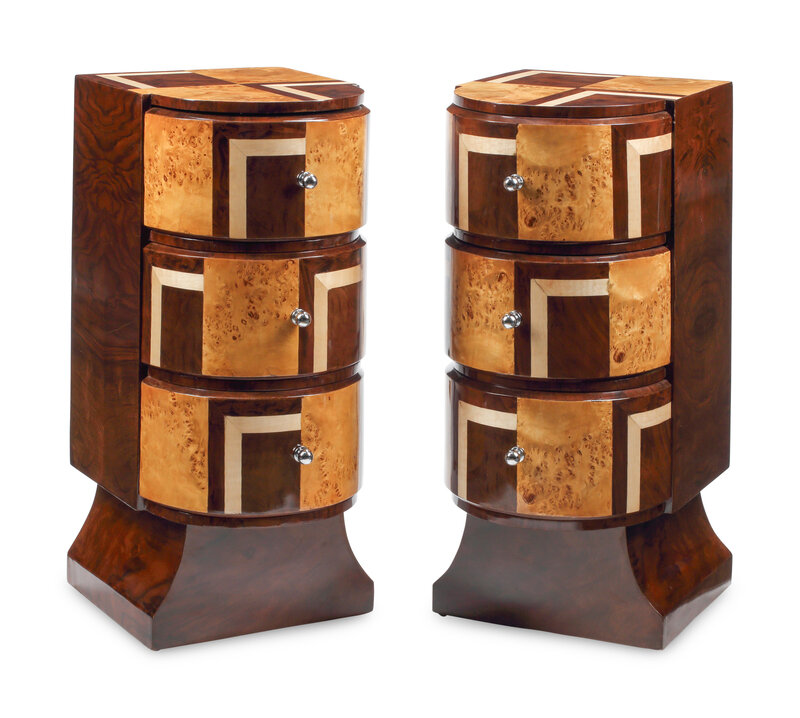 A Pair of Art Deco Style Various Woods Bedside Cabinets