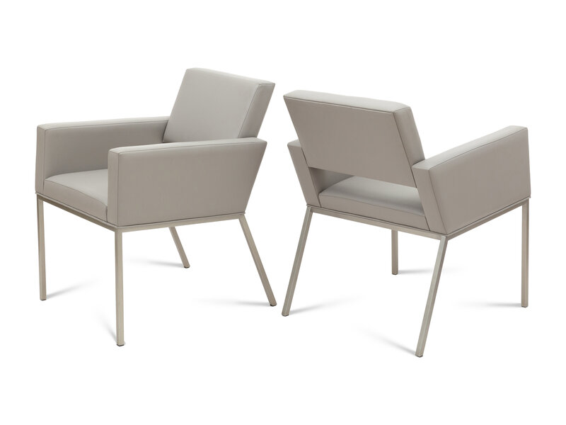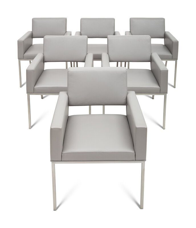 A Set of Six Brueton Apollo Leather and Stainless Steel Armchairs