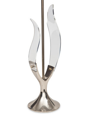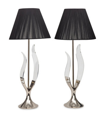 A Pair of Chrome and Acrylic Tulip Lamps with Silk Thread Shades