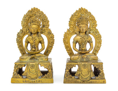 Two Sino-Tibetan Gilt Bronze Figures of Amitayus Height of each 8 1/8 inches.