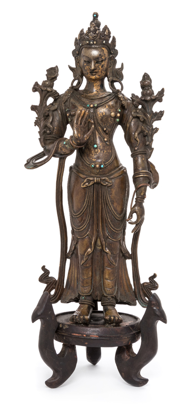 A Sino-Tibetan Bronze Figure of Avalokiteshvara Height overall 15 inches.