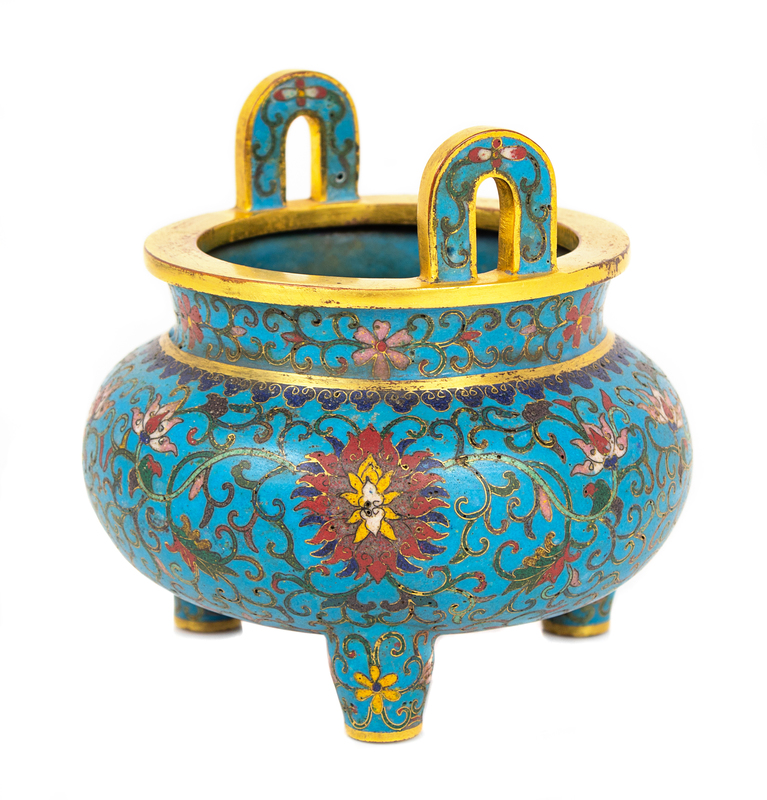 A Cloisonne Enamel Tripod Incense Burner Height 4 3/4 inches.