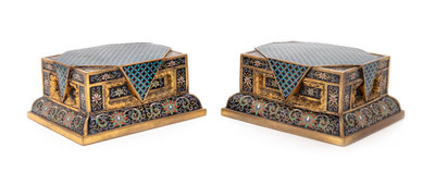 A Pair of Cloisonne Enamel Rectangular Stands Length of each 5 1/4 inches.