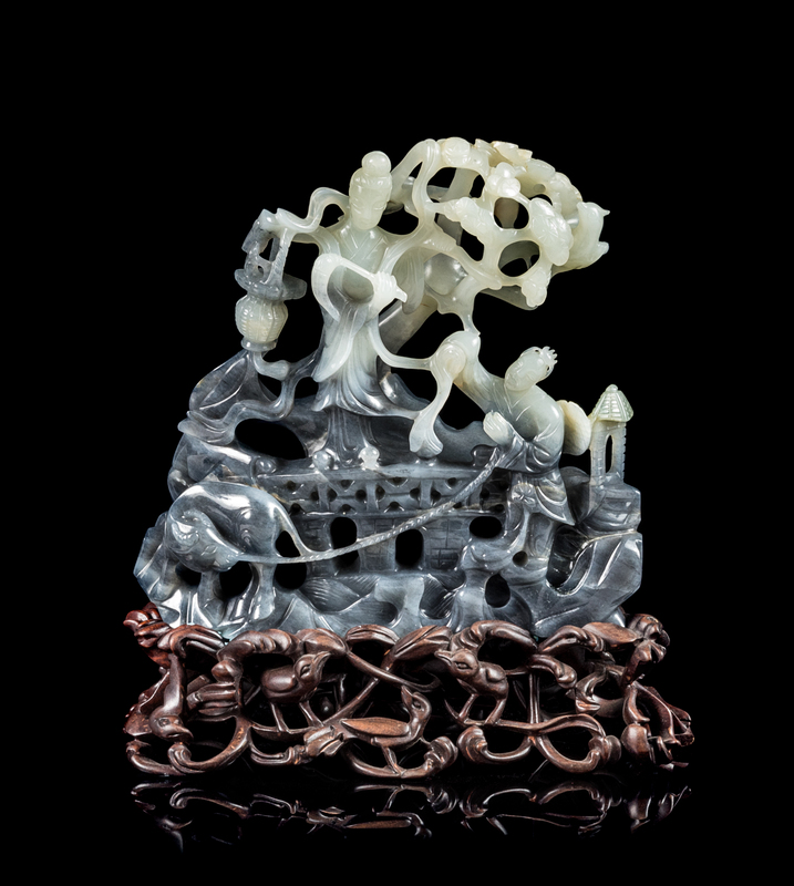 A Black and White Jade Figural Group Height 5 1/2 inches.