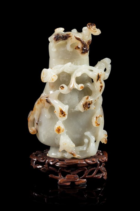 A Russet and Pale Celadon Jade Covered Vase Height 5 inches.
