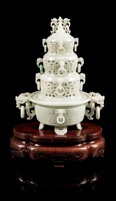 A Jadeite Incense Burner Height 9 3/4 inches.