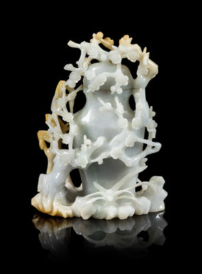 the flattened body with the exterior carved in high relief of flowering prunus branches.