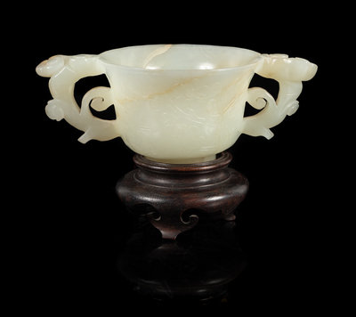 A White Jade Double Handled Cup Length 4 7/8 inches.