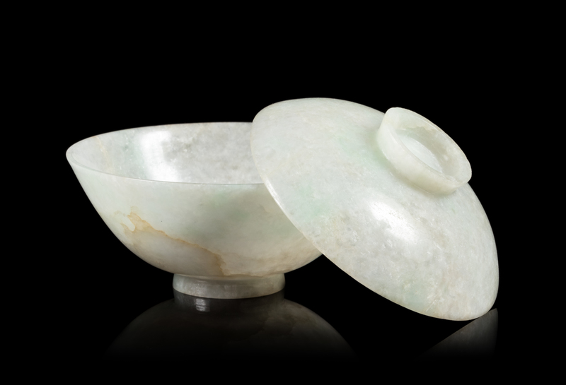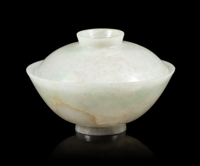 A Jadeite Bowl and Cover Height 2 3/4 inches.