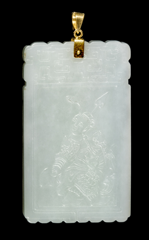 carved to the front showing an armed warrior, the reverse with poetic inscriptions, with 18k gold mounts.