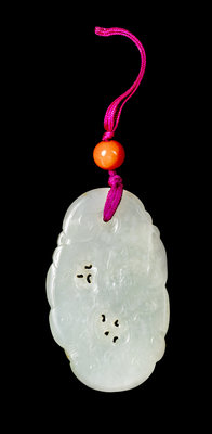 A White Jade Carved Cloud and Chilong Pendant Length 2 1/2 inches.