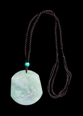 A Lavender and Celadon Jadeite Pendant Length 2 1/8 inches.