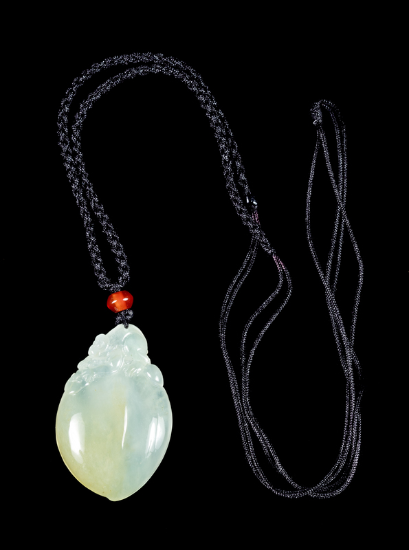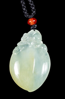 A Jadeite Peach-Form Pendant Length 1 1/2 inches.
