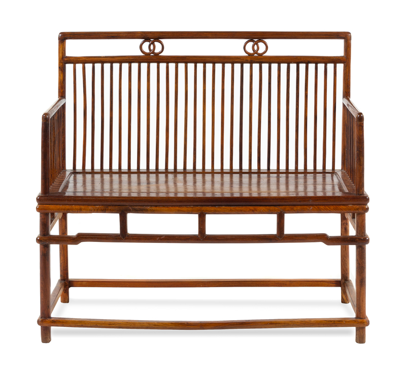 A Huanghuali Bench Height 37 1/2 x length 40 3/4 x width 17 3/4 inches.