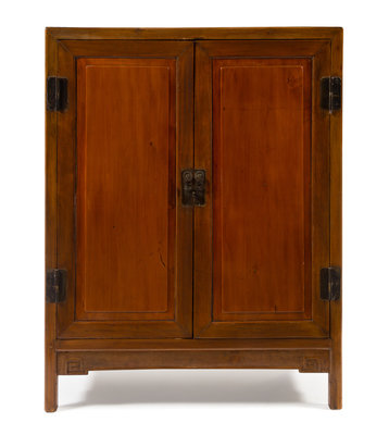 A Tielimu and Cedar Wood Cabinet, Fangjiaogui Height 56 1/2 x width 43 3/4 x depth 18 1/2 inches.
